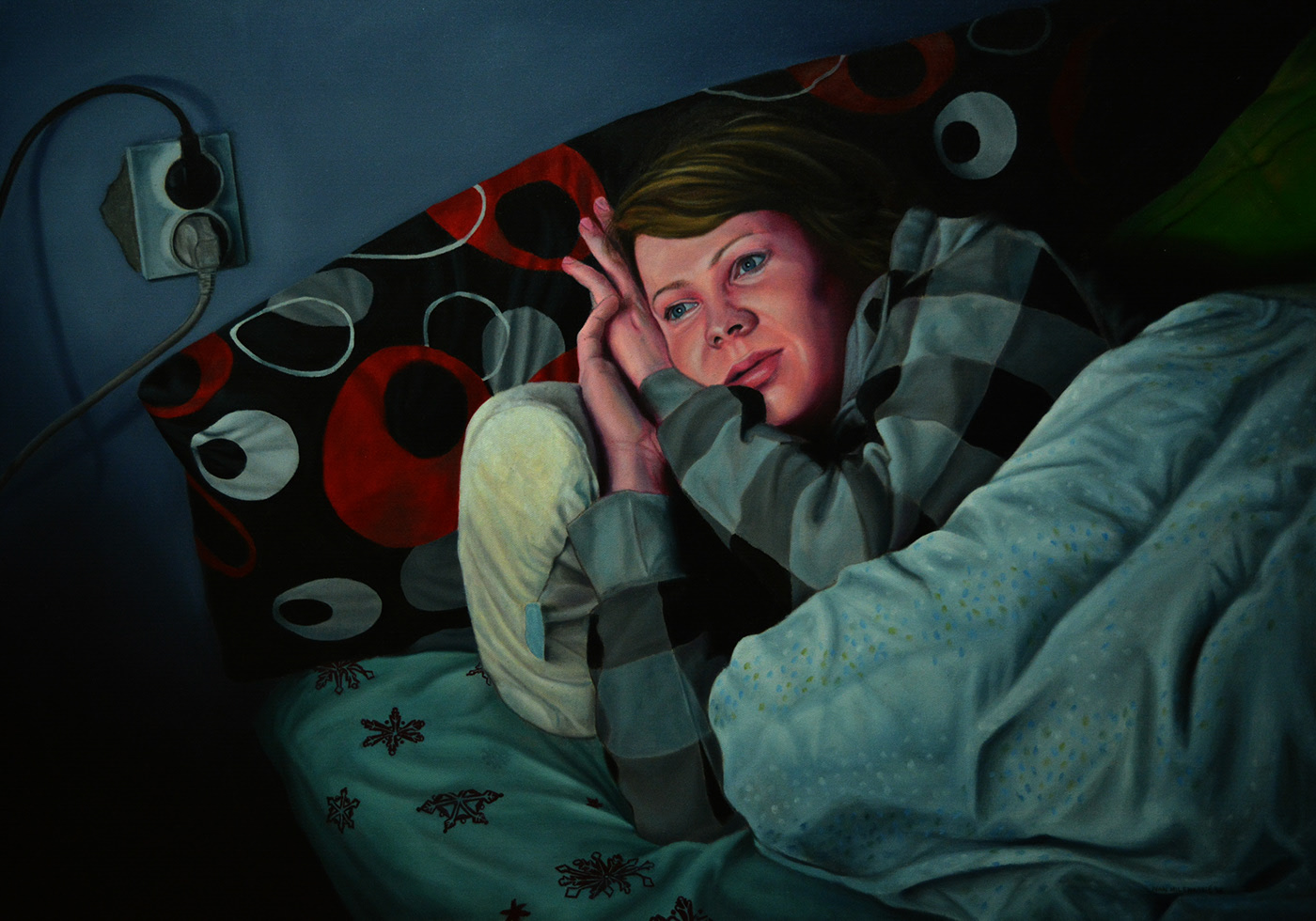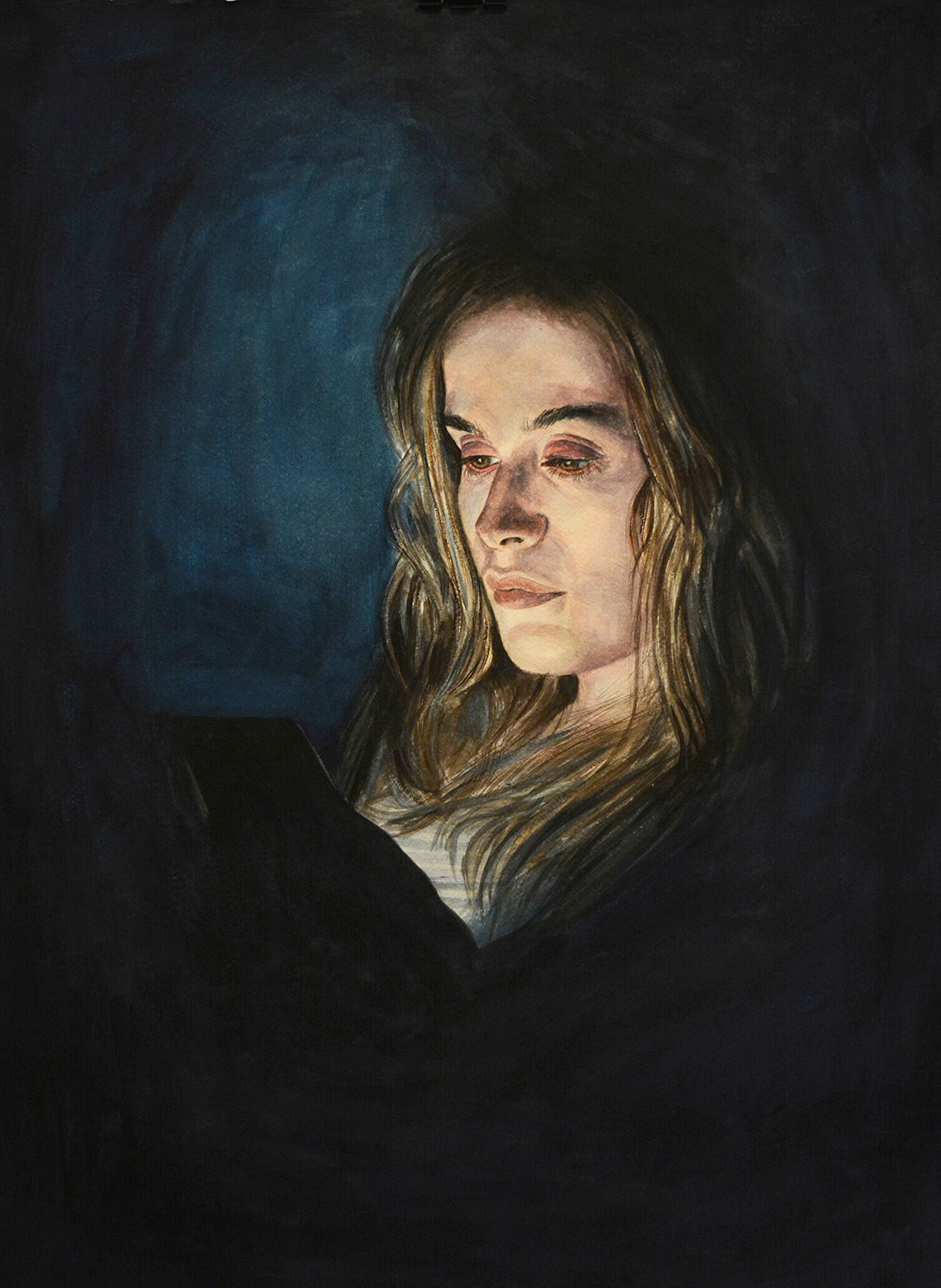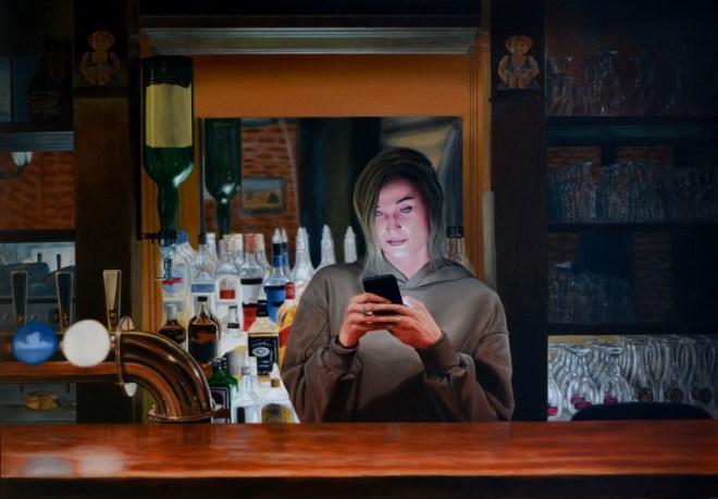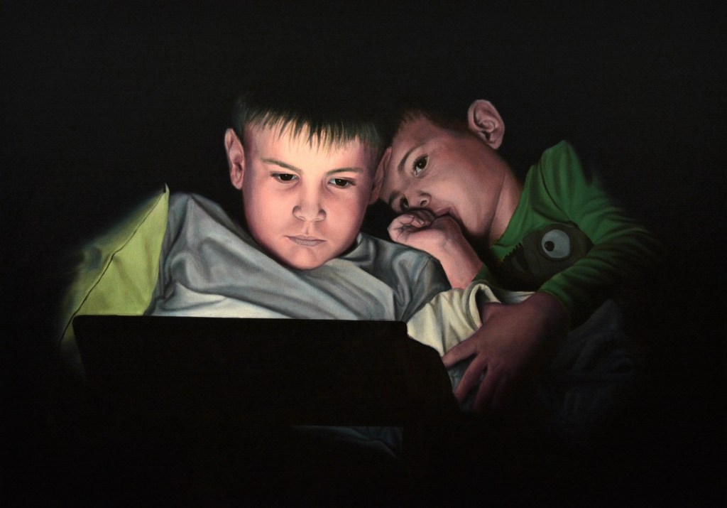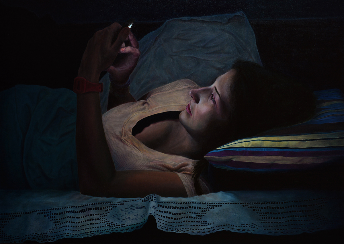 „Ideja je došla spontano kada sam napravio fotografiju jednog druga, tada sam shvatio da je to realna i svakodnevna situacija koja nas okružuje, a sledeća tema u mom slikarstvu. Nisam se zadržao na fotografiji jer mi je izazov da prenesem atmosferu i karakter portretisane osobe gde je glavni izvor svetlosti iz savremenih uređaja“, priča Ivan.